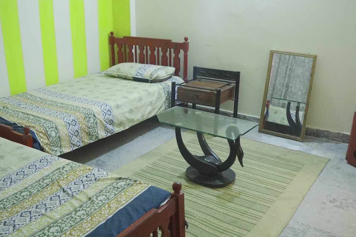 1 Room with AC and 3 rooms Non AC Welcome to our charming guest house, nestled in a peaceful neighborhood. Enjoy a comfortable stay with private entrance, garden access, etc. Perfect for solo travelers, couples, families. We look forward to hosting you! Rooms, Floor available