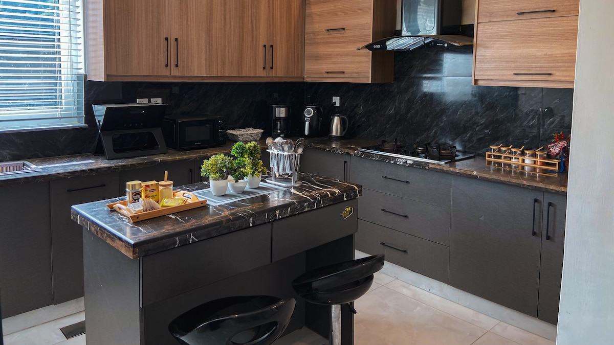 Luxurious designer anexy with servant 24/7, restaurants 5 mins away (food panda delivers), security guards present. Every facility is available in the kitchen-oven;coffee machine;basic grocery;cutlery;fridge etc. outdoor bbq and dining setup, centrally air conditioned with exotic scenery. -8% discount on free and fair use policy (details will be shared) -No drugs, alcohol or parties allowed -Pets allowed but not inside the house