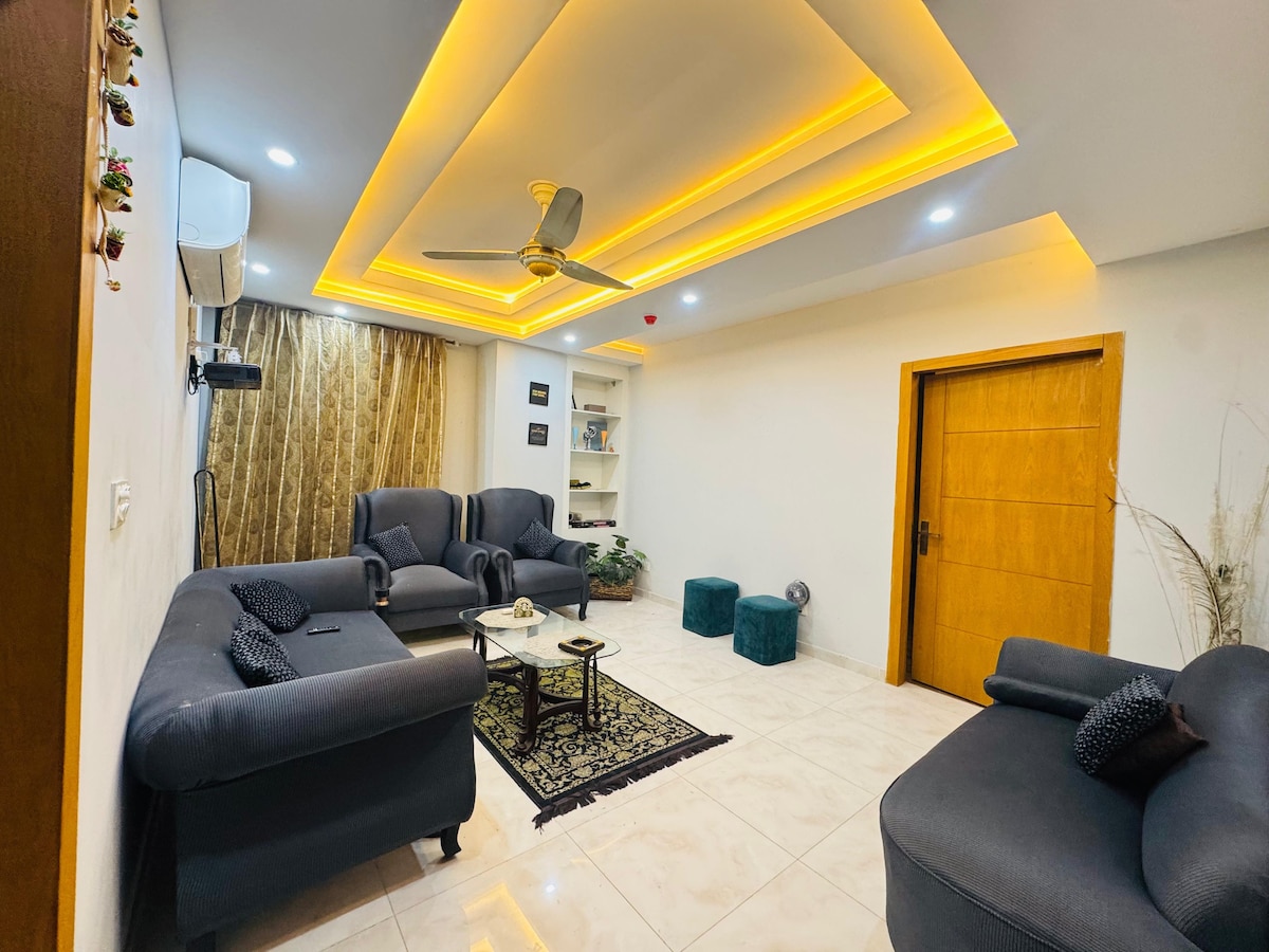 Welcome to our stylish two-bedroom suites in DHA 5 Islamabad. Enjoy the convenience of a quick commute and relax in a space featuring lovely decor and a fully-equipped home theater. Ideal for travelers seeking comfort and entertainment, this cozy retreat offers modern amenities in a prime location. It is a complete separate portion with it own separate entry and parking, family friendly, therefore very secure and peaceful. Parties & loud music is not allowed. Unmarried couples not allowed.