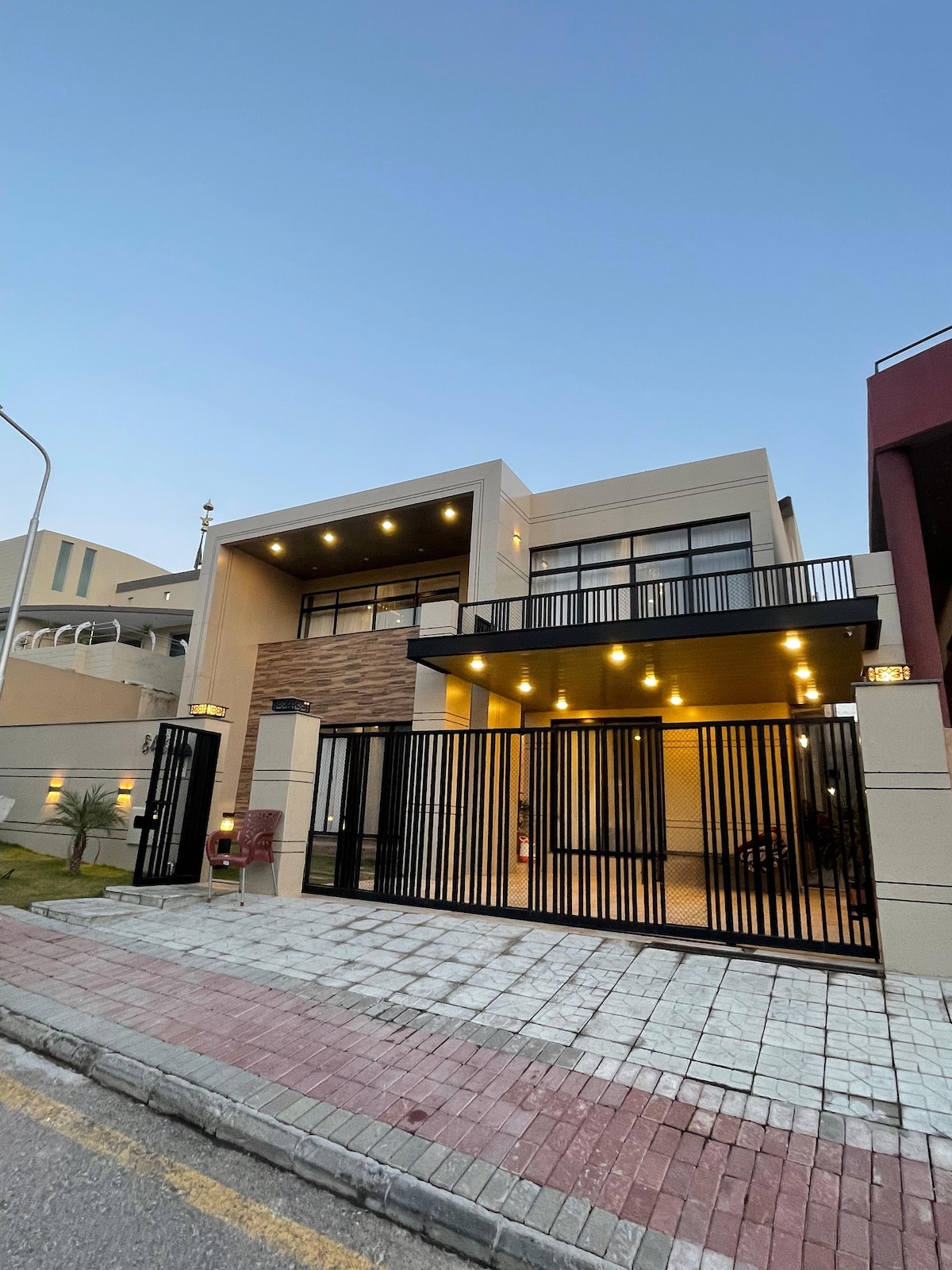 Enjoy a luxury retreat in a lush green family friendly neighborhood. This modern villa features open spaces , sky lights, double heighted windows & front garden add further comfort in the stay. While much of the entertainment can be found within Bahria Enclave, (Birds Aviary/ Zoo) you’re just a 10-15 minute drive from dancing fountains at Park View Society, the vibrant Food Valley and Rawl lake adding even more excitement to your stay. Grocery is delivered at the doorstep adding convenience