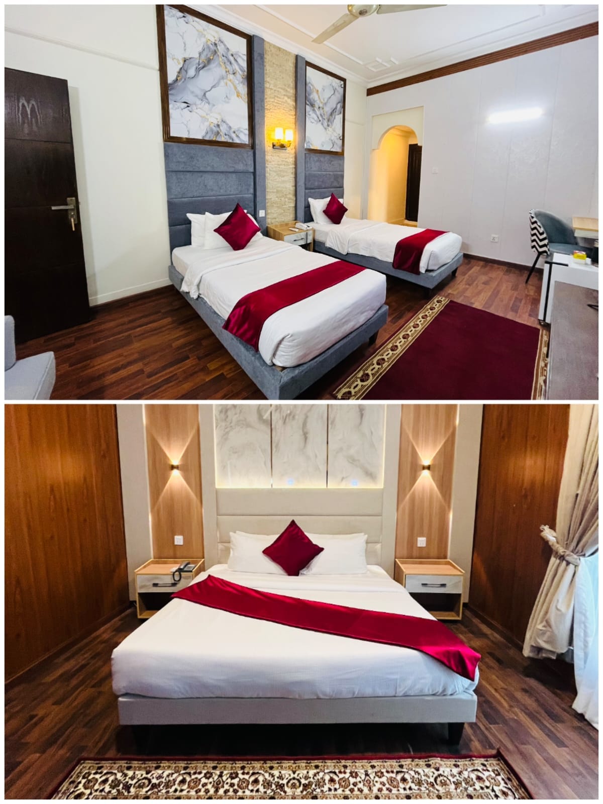 Stay in a modern 2-bed suite at ATLAS Hotel, surrounded by lush greenery in central Islamabad. Steps from Centaurus & SAFA Mall, this stylish suite features comfy beds, ensuite bathroom, AC, Wi-Fi, flat-screen TV, mini fridge, and 24/7 electricity. Enjoy complimentary breakfast, free parking, and 24/7 security — perfect for couples, solo travelers, or small groups. ✨ Book your stay today and relax in comfort at the heart of Islamabad!