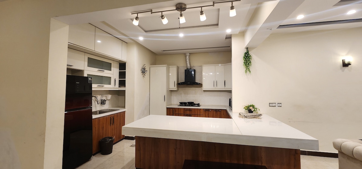 Welcome to our elegant and well-maintained banglow. This listing is for a private portion of the house, thoughtfully designed for family comfort. The portion is located on the First floor and offers three furnished bedrooms, each with an attached private washroom, along with a fully equipped kitchen and a comfortable lounge, dinning. The space is professionally cleaned and includes AC, TV, high-speed Wi-Fi, fresh linens, and essential amenities. Secure, peaceful, and exclusively for families.