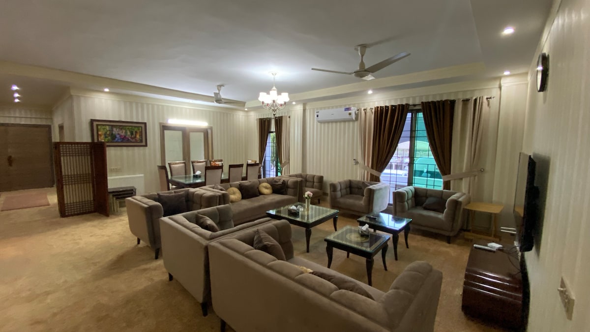 The whole group will enjoy easy access to everything from this centrally located place. It's very close to the Giga Mall, so you can find anything you need easily. The house is ultra-specious and well decorated with modern Furnitures. You can find everything you expect from a 5-star hotel in this house. A chief is available at a small charge if required. The house is designed with CCTV and Solar Energy. You won't experience any regular low shadow which is common for hours in Pakistan.