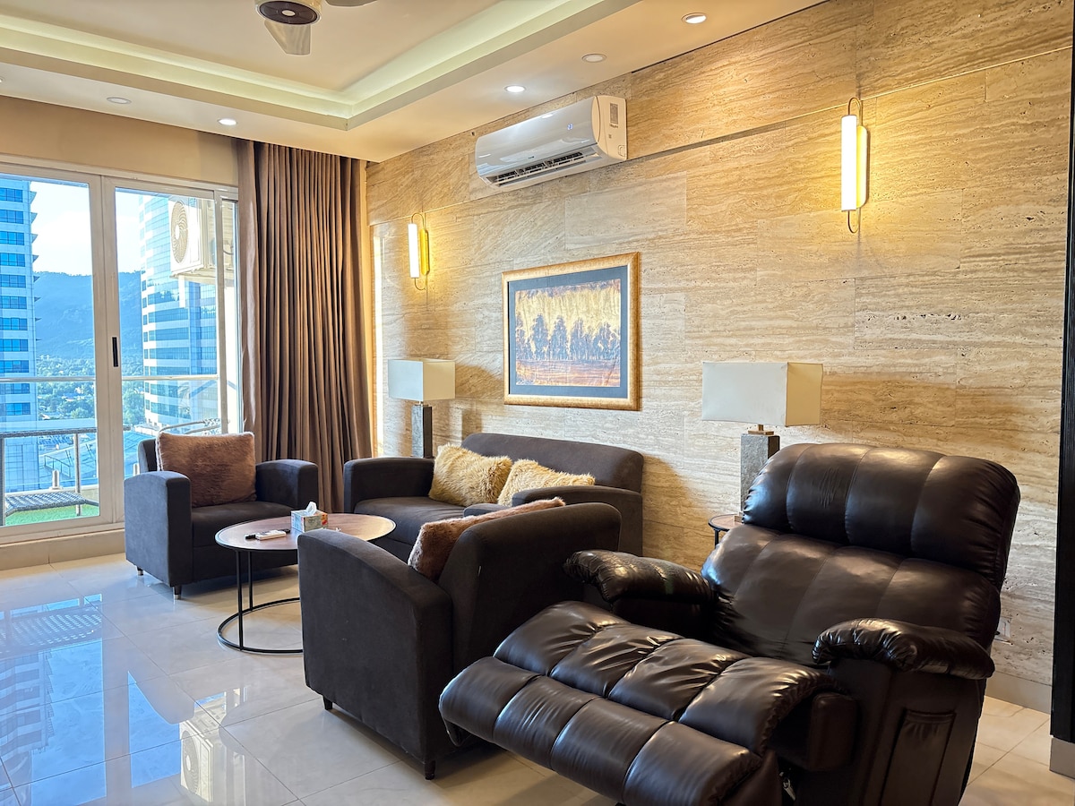 Experience elite living at Wall Street’s flagship 3-bedroom luxury apartment, featuring breathtaking panoramic Margalla Hills views. Designed for families, corporate and premium guests, this spacious residence offers refined interiors, hotel-grade comfort, high-speed Wi-Fi, a fully equipped modern kitchen, and spotless cleanliness. A true signature stay — among the finest luxury apartments in Islamabad.