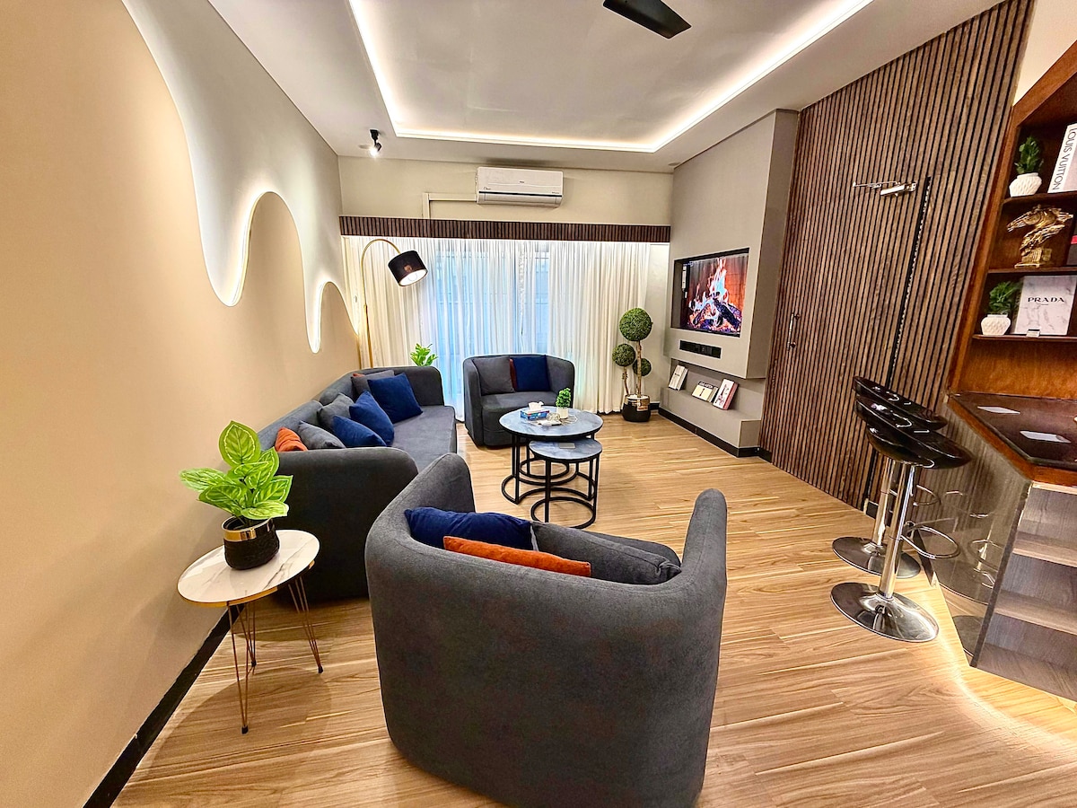🛌 2 King Bed | Private Balcony with Seating 📺 55” Smart TV | High-Speed 30 Mbps WiFi 🍳 Fully Stocked Modern Kitchen ❄️ Inverter ACs | Instant Hot Water 🔐 Smart Lock Entry | Contemporary Interiors 🛍️ Located Above Zeta Mall Food Court | Opposite Giga Mall 🌄 Golden Sunset & Hillside Views 🌇 360° view of the twin-cities with Three massive balconies & enjoy the breath-taking views of the sunrise and sunset An ideal choice for families, corporate guests, and short escapes.