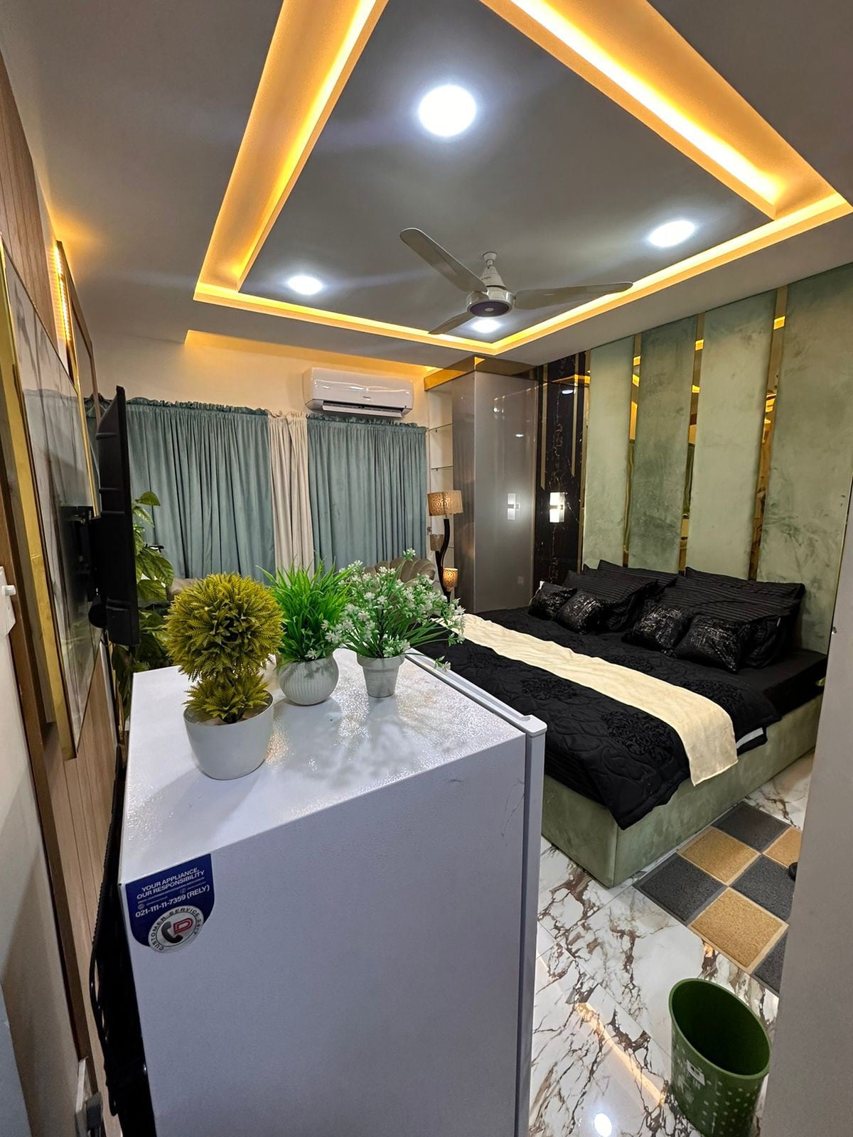 Best Studio apartment to have in Bahria town Rawalpindi in one of the best buildings of Bahria phase 7. Some Ammenties are listed below: - Netflix - 45 inch LED - Wifi - Ac - Coffee, Tea and Water - Extra Free Mattress - Triple Layer Curtains - kettle - Washed Bedsheets pillow Covers and Towels - Neat and Clean - 24/7 Security at Reception - 24/7 Assistant Available - 2 lifts installed - Family Apartment - Fridge - Iron - Led Lights - Microwave - Crockery item - Room Darkening Curtain