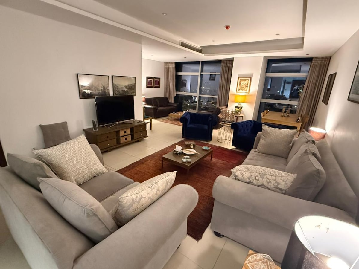 Step inside Flamingo Grand 3 bedroom apartments, the most sophisticated and aesthetically exciting service apartments in Islamabad. Enjoy a safe, secure and stylish experience at this centrally-located place. Whether you are visiting Islamabad for pleasure or for work, we at flamingo assure to provide you with a 5 star experience. Guests also enjoy a dedicated free and secure parking spot, free wifi and experience viewing their favourite tv series on the 65 inch smart led.