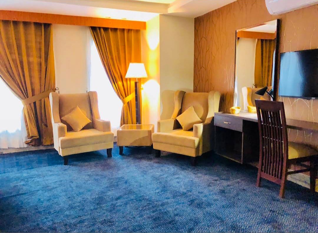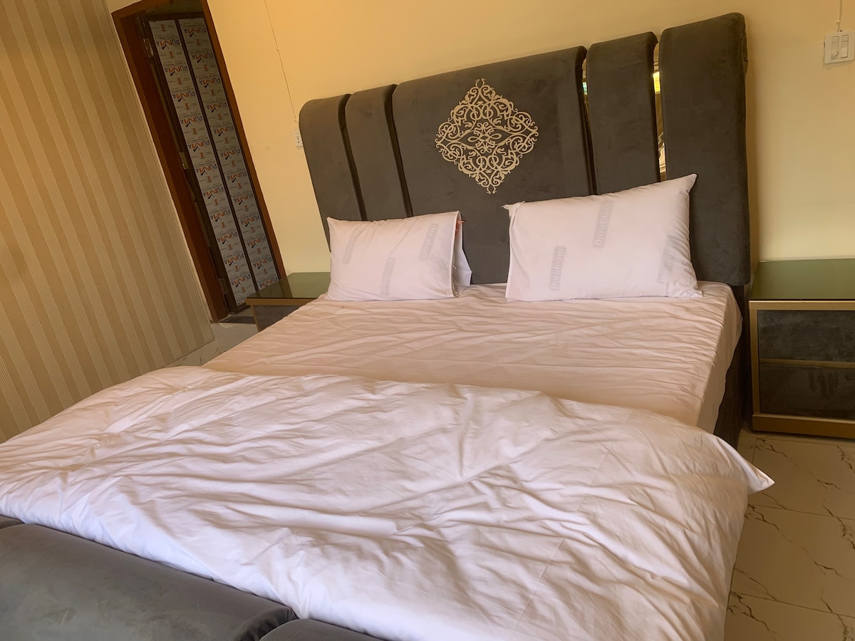 Welcome to the luxury suite, located in G7 Markaz, Islamabad. Our elegantly designed suite offers modern furnishings, a spacious layout, and a private attached bathroom with hot and cold water. Enjoy a flat-screen TV for entertainment and complimentary high-speed Wi-Fi. Start your day with a delicious breakfast for two, included with your stay. 24/7 reception. Conveniently situated near Centaurus Mall and Faisal Mosque, our hotel guarantees an unforgettable experience.