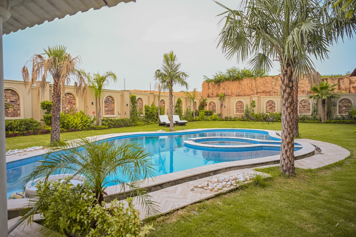 👑 Saks Manor – Prestige Suite | 3-Bedroom Luxury with Pool View Welcome to the Prestige Suite at Saks Manor — a sanctuary of elegance designed exclusively for elite guests seeking privacy, comfort, and class. Overlooking the estate’s crystal-blue pool, this 3-bedroom suite blends refined aesthetics with modern amenities, ideal for families, VIPs, and long-stay travelers.