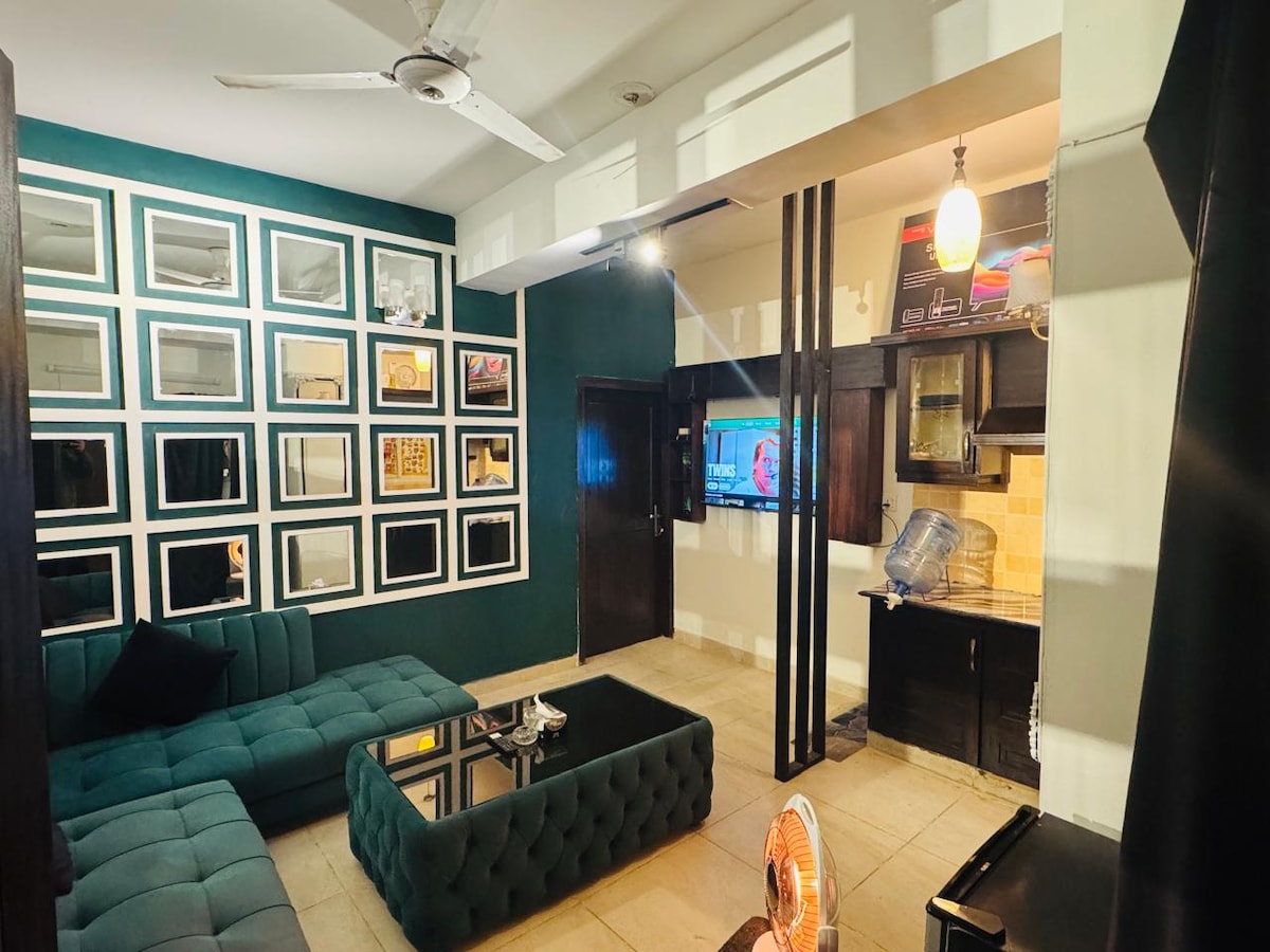Enjoy boutique-style living in this modern 3-bedroom apartment in downtown Islamabad. Featuring rich wooden floors, designer décor, warm lighting, and a stylish lounge with a 55-inch Google TV. Includes a fully equipped kitchen, comfortable bedrooms, and a cozy, upscale atmosphere perfect for families, groups, and business travelers. Your luxury home away from home.