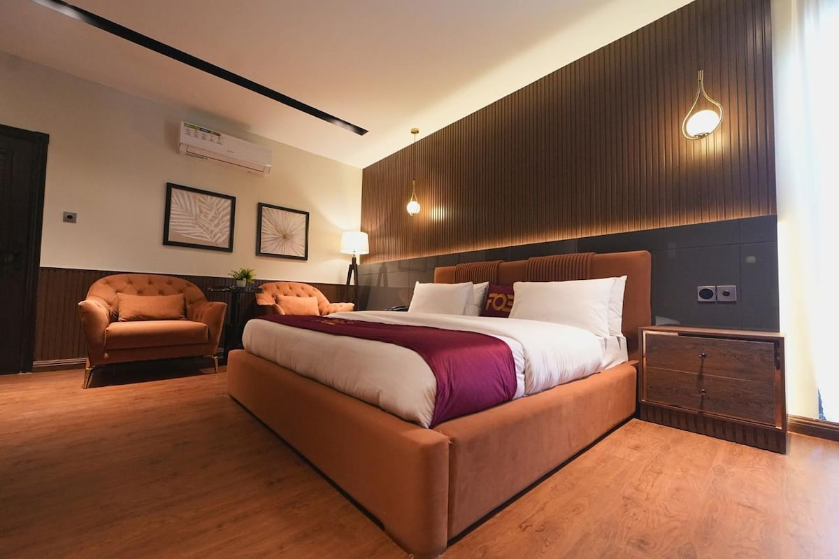 Escape to MMUK’s Lux 2BHK Boutique Suite, a modern and cozy retreat just 4 minutes from D-12. Enjoy a private ground floor with elegant interiors, a 55” Smart TV with Netflix and Prime, fast WiFi, and a dedicated billiards room for entertainment. Perfect for families, couples, and business travelers seeking comfort and style. Close to D-12 Markaz, Margalla Hills, Faisal Mosque, shops, and cafes.
