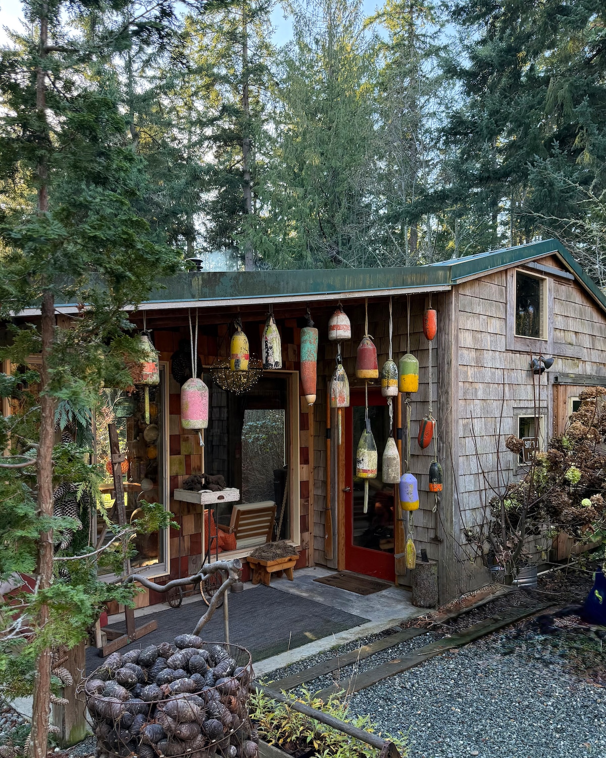 A quiet Whidbey Island hideaway designed for slowing down. Enjoy outdoor soaking under the cedars, a cedar sauna and cold plunge, cozy fires, and a thoughtfully stocked cabin that makes it easy to relax. Guests also have access to our Goat Barn Studio—a warm, creative space for yoga, art, reading, and slow evenings with records.