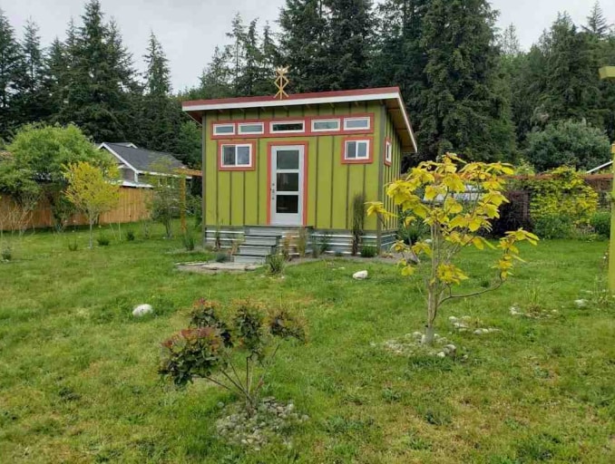 Cozy waterfront Tiny Home located on Whidbey Island overlooking Holmes Harbor in Freeland, WA. Completely self-contained, it is perfect for the solo traveler and suitable for a couple. The view from the queen sized bed is magical, and the partially covered deck shares the same view. The unit is complete with toaster oven, microwave, 2 burner induction stove, small refrigerator and bathroom with shower. This unit shares the property with another Tiny Home where the owner lives full time.