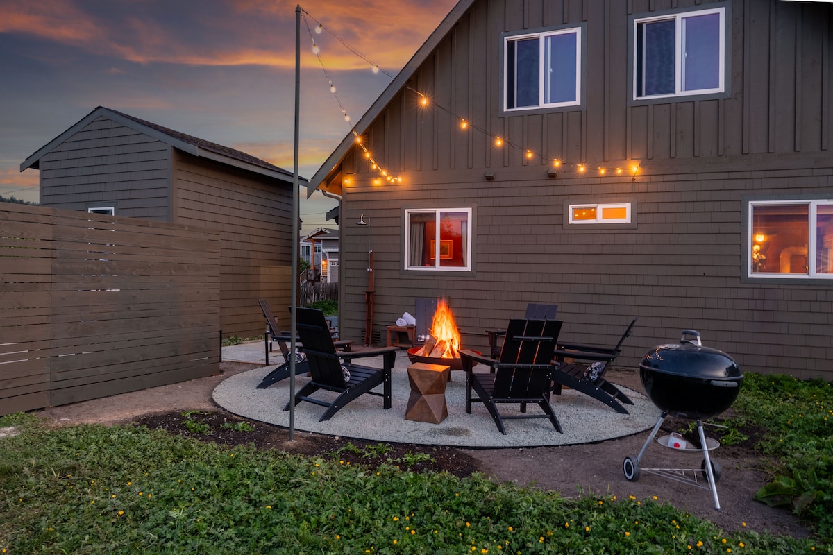 Enjoy breathtaking views of the Sound and Olympic Mountains while relaxing on one of the three decks of our newly remodeled waterfront home. Our modern beach house features three spacious upstairs bedrooms around a separate sitting area, a large living and dining space downstairs, and bathrooms on both levels. You can spot seals, bald eagles, and whales while walking along the no bank beach steps from our front door. Sip wine around the propane fire pit while enjoying the magnificent sunset.