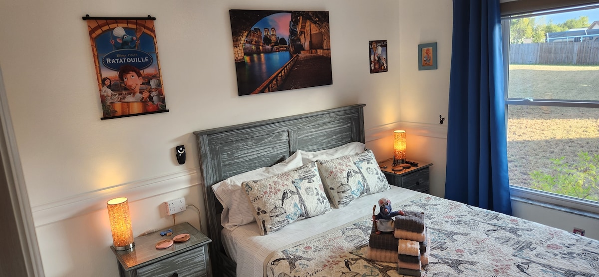 Welcome to our charming 3-bedroom, 3-bathroom house, thoughtfully created to create magical moments for your entire family! Immerse yourself in our themed rooms, each capturing the magic of beloved stories like Happy Potter and Mickey Mouse. Accommodating up to 10 guests, your Disney adventure starts here! The following extra services include additional costs: Grill Early Check-in Late Check-out