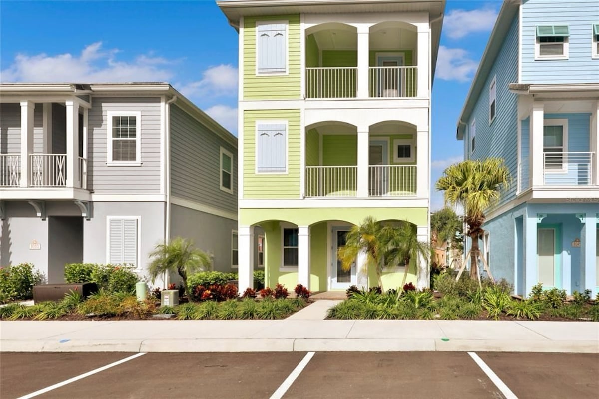 Close to Disney! Stunning *New 3 bedroom/ 3 bath home located inside the Luxury community of Margaritaville. This private oasis is centrally Located, few minutes away from the parks and restaurants. Sunset Walk is located next to the resort and it has more shopping, restaurants, Dine-in Lux Theater, & entertainment, including "Estefan Kitchen" by Gloria Estefan. While you unwind & relax, kids will love the new spectacular waterpark, Island H2O Live. Welcome to your island adventure!
