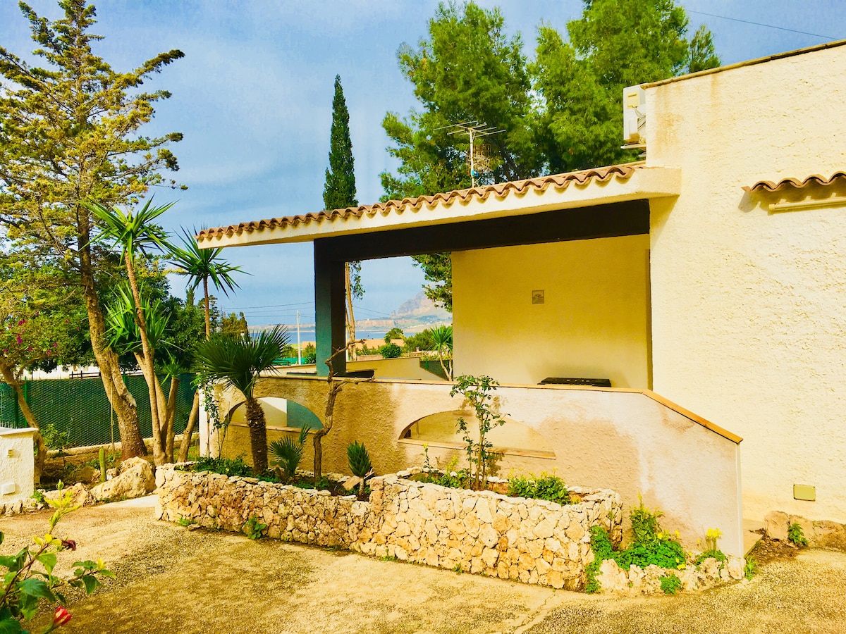 Casa in stile dentro la riserva naturale del Monte Cofano a circa 400 m dal mare con una splendida vista sulla baia di Macari ,contesto naturale esclusivo. La casa era un vecchio rifugio contadino ed è stata ristrutturata con estrema cura dei particolari in tufo e pietra balata. E’ un luogo per gli amanti del relax, natura e privacy. All’esterno il giardino ha vista mare sull'intera baia ed è terrazzato con pietra balata antica e mosaici e una panca in pietra e ceramiche siciliane.