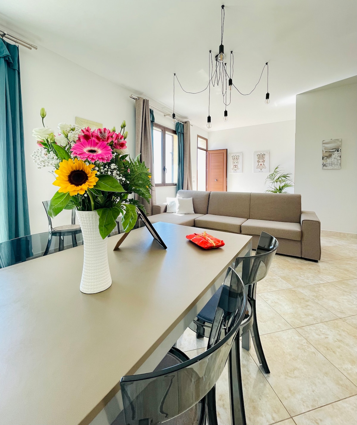 EN: Brand new stylish and modern apartment with 2 bathrooms and 2 bedrooms, terrace with outside sitting and dining area, and private rooftop with unique view on Motia Island and Lo stagnone. Very close to Lo Stagnone kite schools, Le Saline di Marsala and 15 minutes from Trapani airport. unique place has a style all its own. Free parking inside the Villa. IT: Nuovissimo moderno appartamento con vista unica sullo Stagnone e Motia con 2 bagni, 2 camere, 2 terrazzi e parcheggio interno.