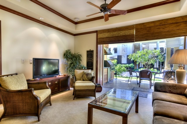 Light & Bright 3BR/3BA end-unit townhome in Waikoloa Beach Resort! Soak in island breezes and watch golfers from your spacious lanai. Features luxury furnishings, remodeled bathrooms, new A/C, high-end kitchenware, local artwork, and Tommy Bahama decor. Just steps to resort pools, hot tub, BBQs, and gym. Walk to King’s Shops, Queen’s Marketplace, and top beaches. Perfect for families or couples seeking comfort, style, and convenience in a peaceful resort setting.
