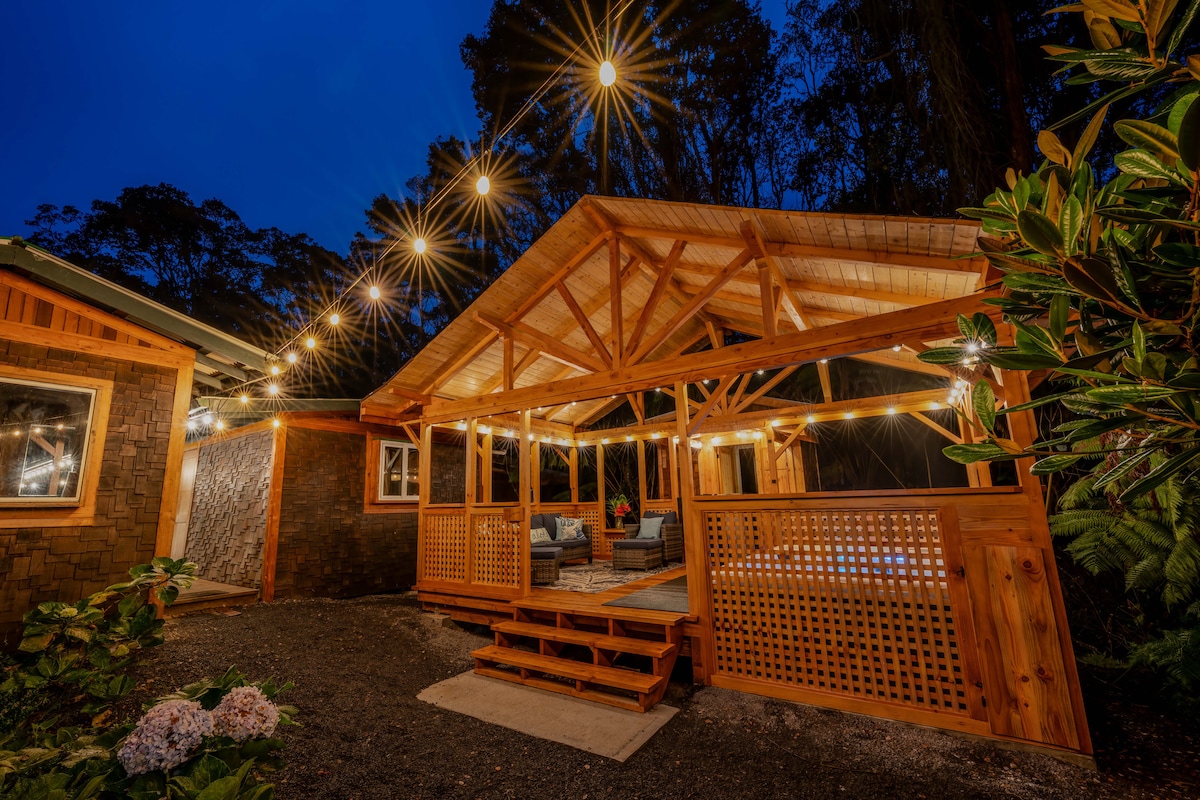 Newly completed in Jan. 2023! Our cabin is perfect for ventures into Volcanoes National Park, and sits on a peaceful private 3 acre property that’s perfect for couples. You’ll love the semi-outdoor shower with screens to keep out any bugs or critters, and the patio kitchenette is a great place to relax and enjoy brunch, a cocktail, or a brunch cocktail! California King bed with Casper mattress, luxury bedding, fast wi-fi, covered parking, and lots of fun custom design touches!