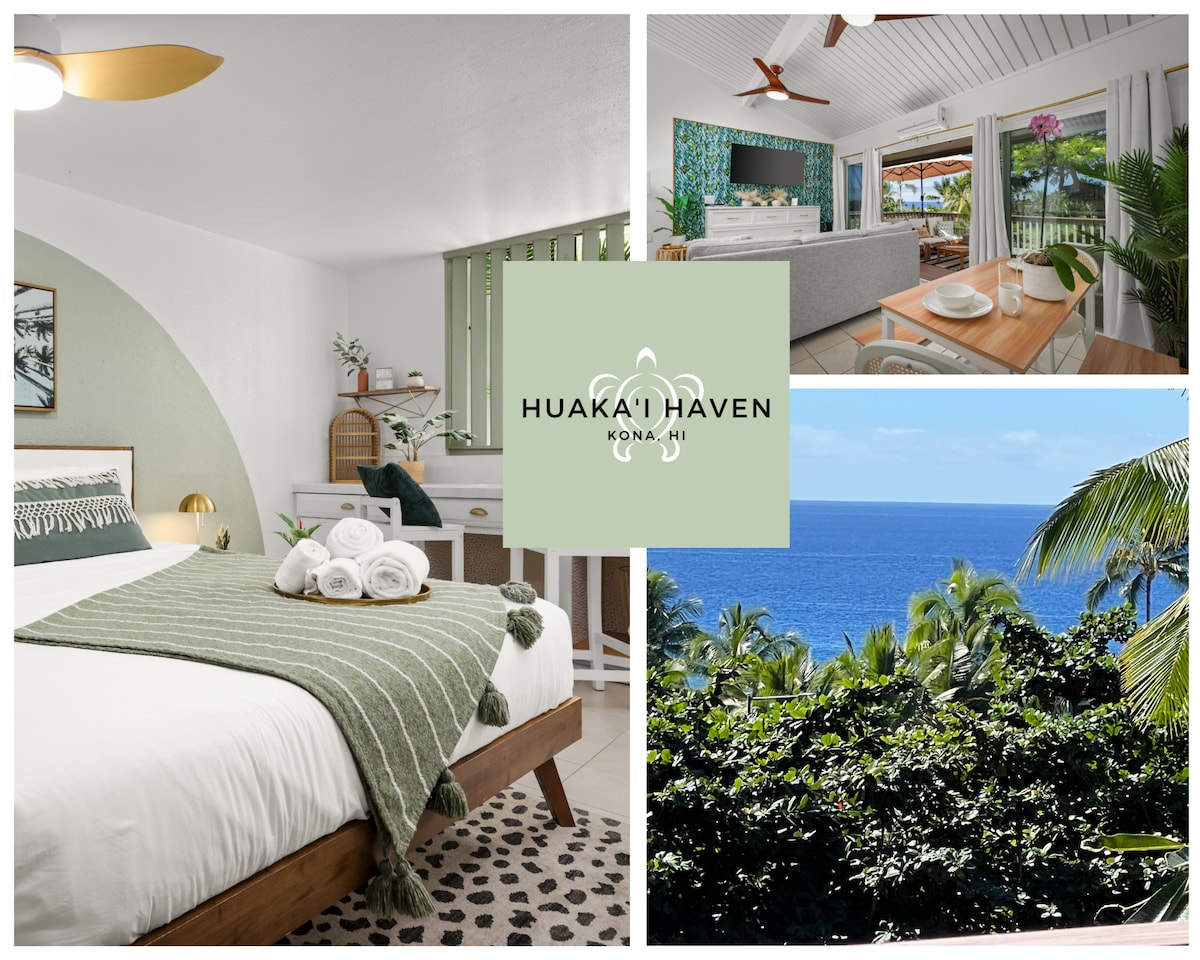 Serenity in Kona- with epic ocean views! Wake up with the ocean waves crashing below. Hang out on the lanai with some Kona coffee from the Green Flash cafe next door. You have a front row seat for whale watching during whale season. Or, hang out and enjoy the sunsets- at times with our local manta ray! We have a queen sofa bed, and AC. Close to town- an 18 minute walk. Quiet, very little road noise here. You can rent bikes too across the street.