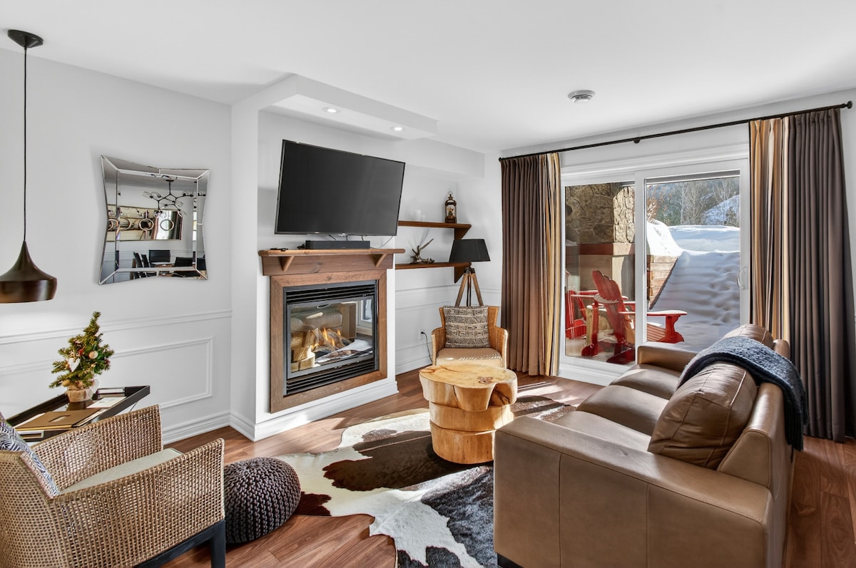 Chalet moderne en pleine nature avec vue sur la montagne. Spa extérieur couvert ouvert à l’année, foyers au bois intérieur et extérieur, planchers chauffants et BBQ. Cuisine complète avec café inclus. Trois chambres : suite des maîtres avec lit king et foyer au gaz, 2e chambre avec lit queen et mezzanine, 3e chambre avec lit queen. Terrain de 5 acres avec 2e phase locative prévue en 2026. Parfait pour vous ressourcer. No enr. 309551 exp. 2026-06-08.