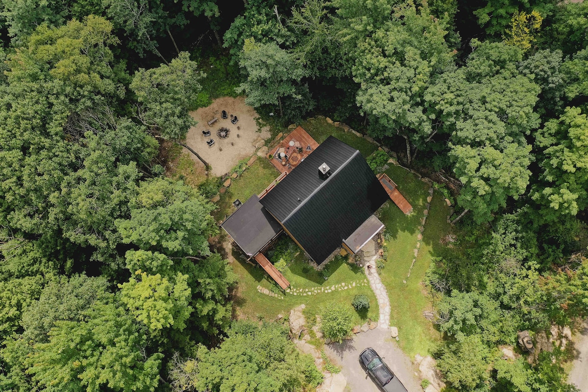 Chalet en pleine nature avec vue sur la montagne. Spa extérieur couvert ouvert à l’année, foyers au bois intérieur et extérieur, planchers chauffants et BBQ. Cuisine complète avec café inclus. Trois chambres : suite des maîtres avec lit king et foyer au gaz, 2e chambre avec lit queen et mezzanine avec lit queen. Terrain de 5 acres avec 2e phase locative prévue en 2026. Parfait pour vous ressourcer. No enr. 309551 exp. 2026-06-08.