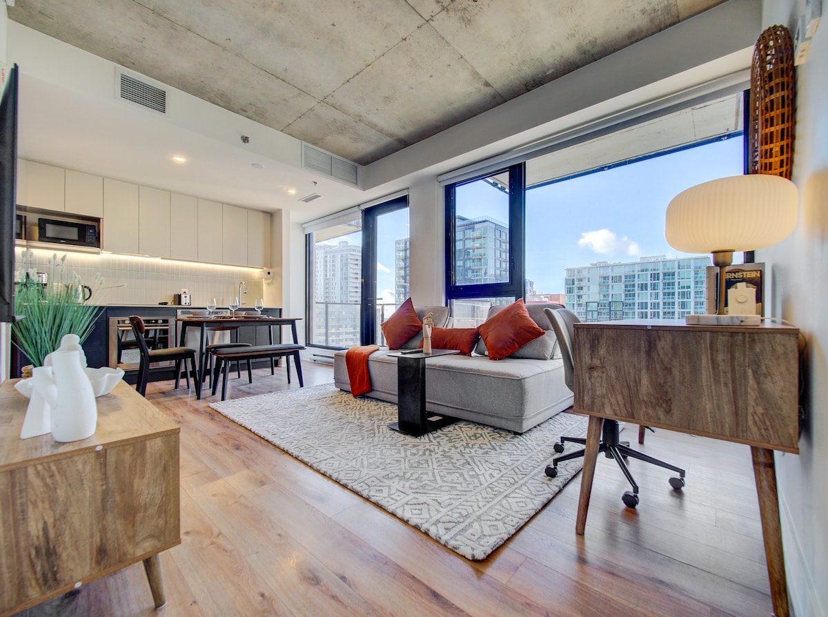 Appartement de style condo de 420 pieds carrés, moderne et lumineux. Que ce soit pour le loisir ou le travail, c’est facile de prendre ses aises quand tout ce qu’on cherche est à portée de la main. Vous avez accès à un balcon privé avec vue sur le centre-ville. Une pièce d'identité et une carte de crédit valide sont requises pour effectuer l’enregistrement. Une pré-autorisation de 250,00$ est capturé lors de votre enregistrement. CITQ: 300840