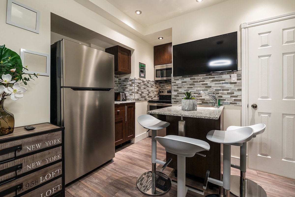 Located in Villeray this charming one-bedroom apartment has everything you need for your unforgettable stay in Montreal. Cozy, bright and comfortable with lots of space, a place to hang out on the roof, and a balcony connected to the living room. It is fully furnished and includes an open area and a complete kitchen with all appliances and cooking necessities. A smart TV with a full HD display and a universal HDMI port is available. Free Wi-Fi. Accommodation establishment number 307022.