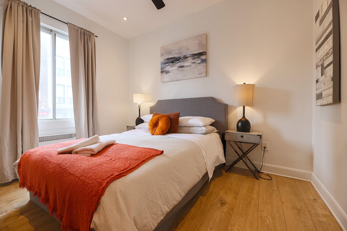 Nestled in Old Montreal district, along the beautiful boardwalk, this 3 Bedroom Suite stays true to the European influence of the Old Port. Designed with the concept of slow living, we stayed true to the original architecture of the building. Enjoy the beautiful water views while sipping on your morning brew. Fully equipped with a kitchen and 2 full bathrooms makes for the perfect longer stay. TV's in the living room and bedrooms include Netflix and Prime. Hi-Speed Wifi included.