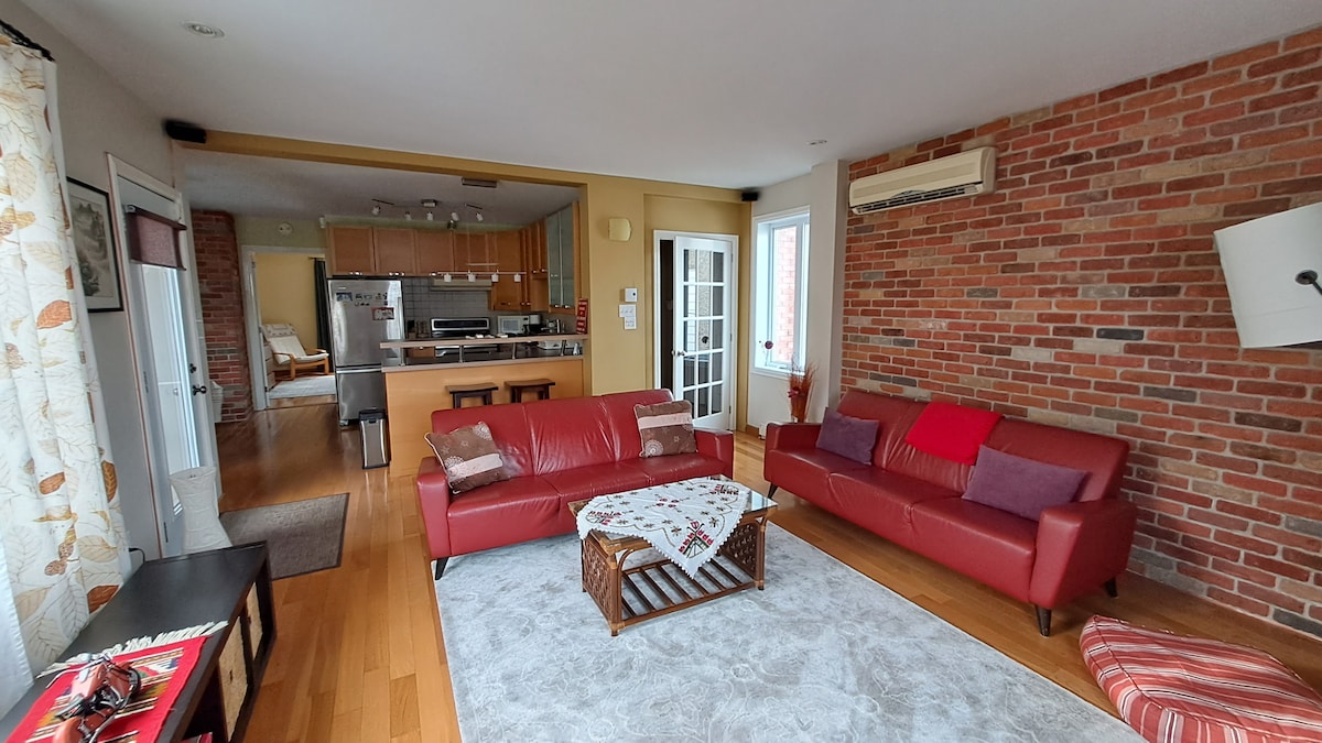 A large, bright, and spacious loft featuring a terrace designed to make the most of sunny summer days outdoors. This unique space is perfect for friends and families seeking a tranquil and high-quality stay in the heart of everything on the Plateau.