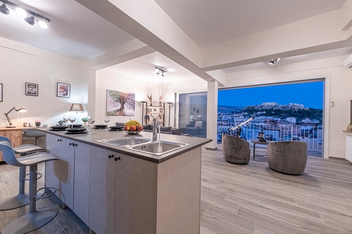 Breathtaking panoramic views of the Parthenon Acropolis from inside the apartment with open unblockable horizon and with spectacular city view, sea, sunset, the Acropolis and Lycabettus Hill views from the balconies as well! Located right in the center of the Historical Athenian triangle comprised of The Acropolis Parthenon, The Columns of Olympian Zeus at the side of the National Gardens of Zappeion Hall and the Panathenaic Stadium(Kallimarmaro) where the first ever Olympic games took place.