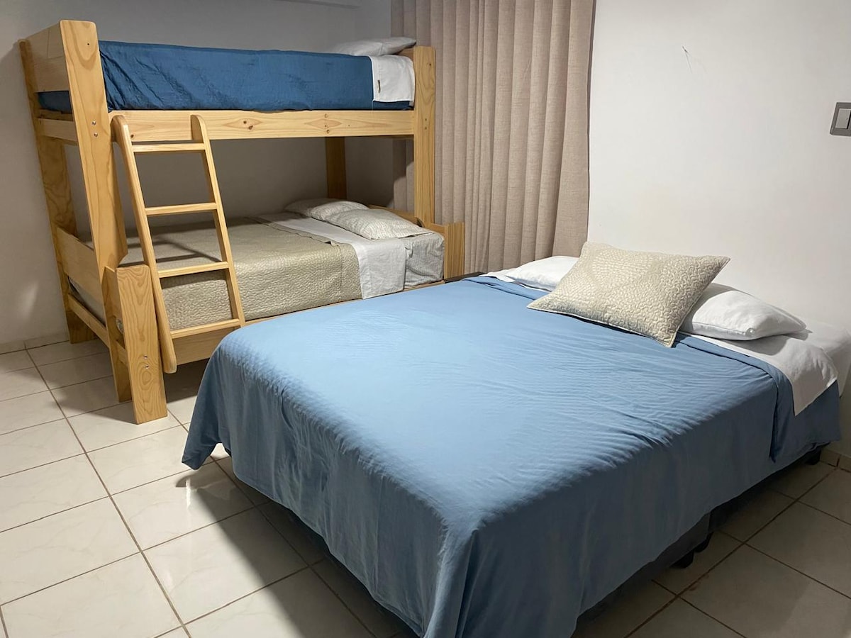 Es un espacioso ambiente cerca a la playa y al centro de la ciudad. Tranquilo para descansar y pasarla bien con la familia. Está implementado con una licuadora, olla arrocera, un frío bar cocina con gas y todos el menage necesario para degustar y cocinar todos los potages que más gustes hacer.