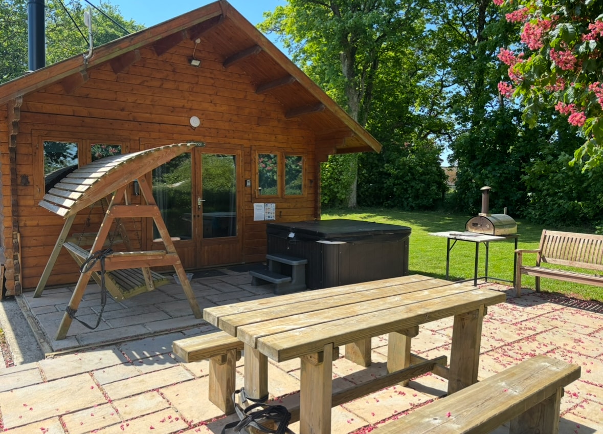 Modern, light and airy Alpine style wooden lodge with beautiful open plan bedroom/lounge with toasty log burner. Modern kitchen with double oven, 4 ring hob, dishwasher. Dining area. Walk-in rainfall shower, radiator/towel heater and underfloor heating. Roku TV, broadband wifi, washing machine and dryer. Parking within the private, fully-fenced, dog-secure self-contained garden area. EXCLUSIVE use of hot tub. Comfy superking bed :) Please add pet fee to booking, thanks! 25mins to Zip World.