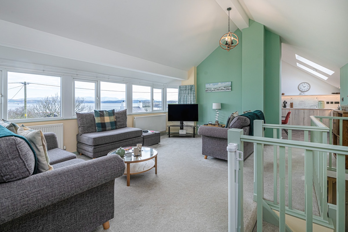 Craig Fach is a spacious 2 bedroom house with potential to sleep another person on the day bed on request. Room one has a king size bed and Room 2 a double bed. It has an enclosed courtyard to the front and garden with raised decking at the back to enjoy the stunning views of Snowdonia and the Menai Straits. Centrally located for quick access to the mountains & beaches. A five minute walk into Menai Bridge and the boutique shops, bars and restaurants & a short walk to Waitrose.