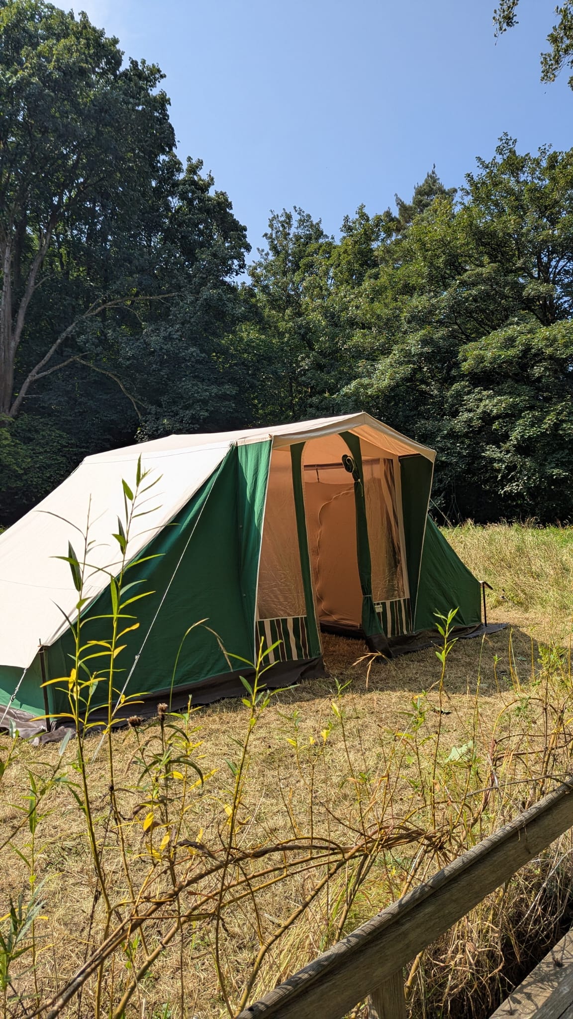 Two single beds, one in each bedroom compartment. Bring your own camping bedding and equipment. Mattress included. Reconnect with nature at this cosy canvas escape. A short 15 minute walk into the UNESCO town of Caernarfon with it's castle, bars and restaurants. A perfect setting with a delightful tent all ready set up for you. Enjoy wild swimming in the river, relaxing in the tree net or outdoor bath (£30 hire). A short drive to Eryri mountains and Y Wyddfa and beaches. Hot showers.