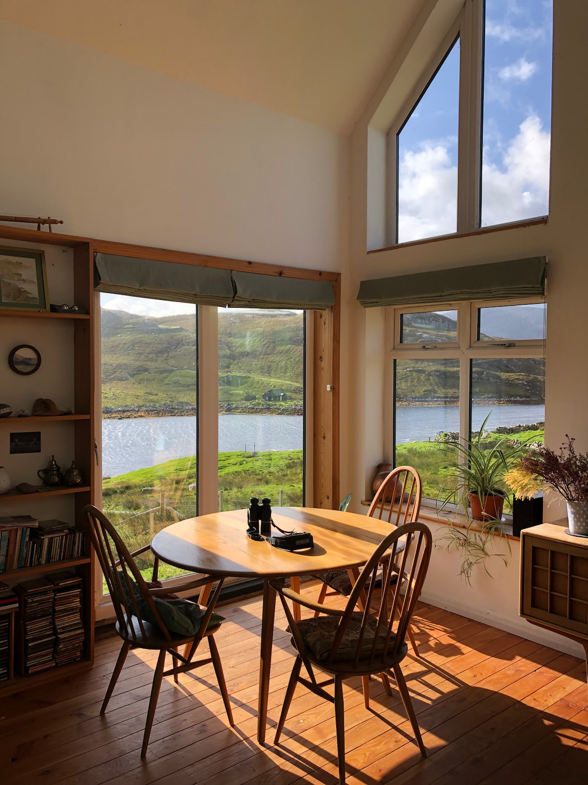 As close to the sea as you could get. Peaceful and private. No road in front. Spacious grounds with stream, bridge and trees. Just the two bedrooms (one double and one with 2 singles). Fantastic kitchen, dining, living room space with 6 windows for maximum sunlight and views and a wood burning stove. Situated at one end of the village within walking distance of pub, restaurants and shop. Perfect spot for watching sea eagles, otters, seals and sunsets. Magical and inspiring!