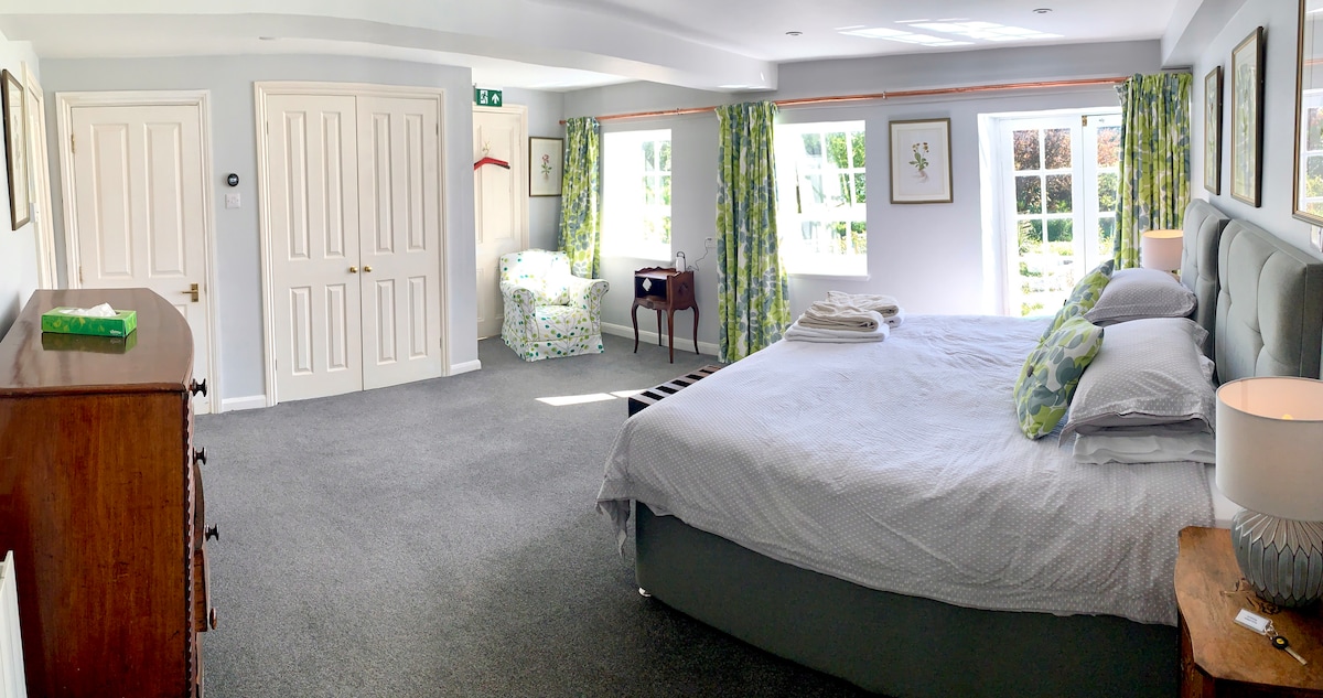 Centrally located & ideally suited for exploring the island. Overlooking the river, a comfortable super king bed with feather duvet & pillows with cotton linens. The en-suite bathroom has a shower over the bath. A 2nd bedroom is available at additional cost but must share the bathroom and has use of the downstairs cloakroom. I will contact you to confirm what you like to eat for breakfast. We have 2 friendly house cats and 2 golden retrievers not allowed in guest rooms.