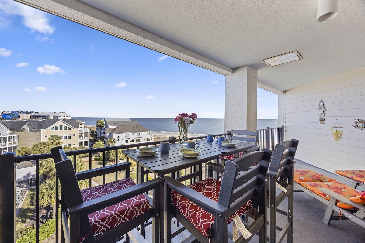 ROOF CONSTRUCTION Oct 20, 2025 - Feb 13, 2026. THERE WILL BE SOME NOISE AND CONSTRUCTION VEHICLES WEEKDAYS 7:30 AM - 6PM and SAT 9AM - 4PM. Beautiful, 1 B/1B unit with stunning views of the ocean and IOP beach. Enjoy your piece of paradise in this oceanfront unit with direct access to the beach, private pier, and pool. Relax with stunning views from the living room and balcony, just steps from the beach. Sleeps 5 (up to 4 adults & 1 child) with 1 Q bed, 1 Q sofa bed, and 1 hallway bunk.