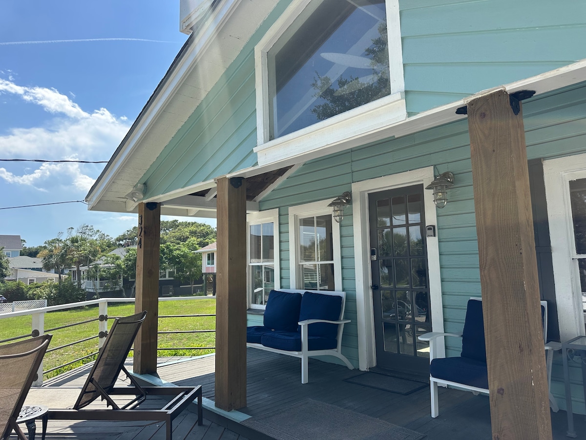Location, location, location. Literally steps to the sand from this relaxing beach abode! Just roll out of bed and walk through the tree lined tunnel straight to the boardwalk of your own fairly private beach! Bring your dogs and let them roam the huge fenced in backyard lined with live oaks and a fire pit for the family to unite. A quieter part of Folly where the surfers like to shred but still only a short while to the bars of Folly and just 15 minutes from downtown. You will love this place!!
