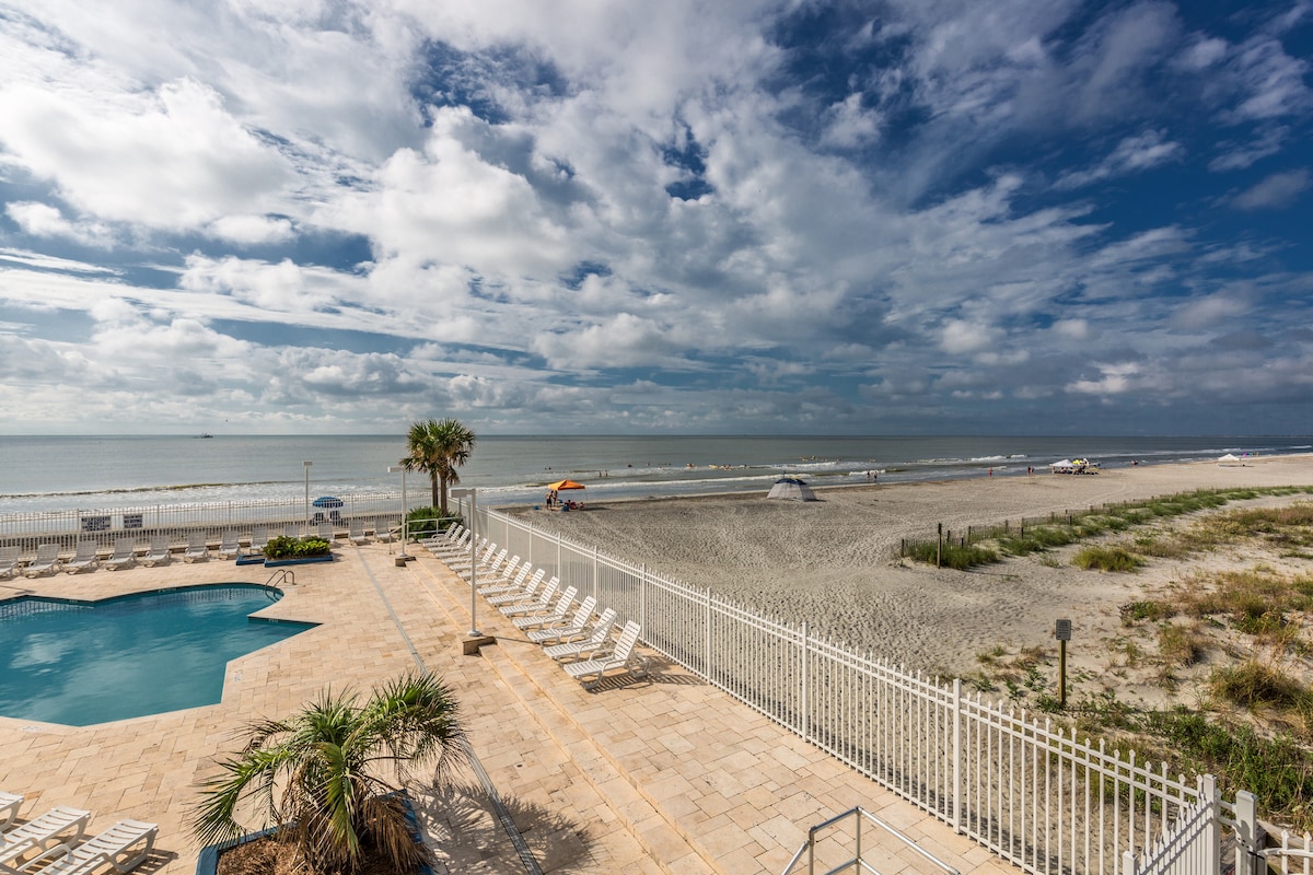Make your next vacation unforgettable with a stay in our charming beachfront condo with private beach access, pool (unheated but open year round), & the only pier in town! Watch the sunrise from the balcony or take a stroll along the beach to feel the sand between your toes. After a day of sunbathing, your fully equipped kitchen & comfortable living room provide the perfect setting for enjoying a family meal or game night. Don't feel like cooking? The shops and restaurants of IOP are steps away!