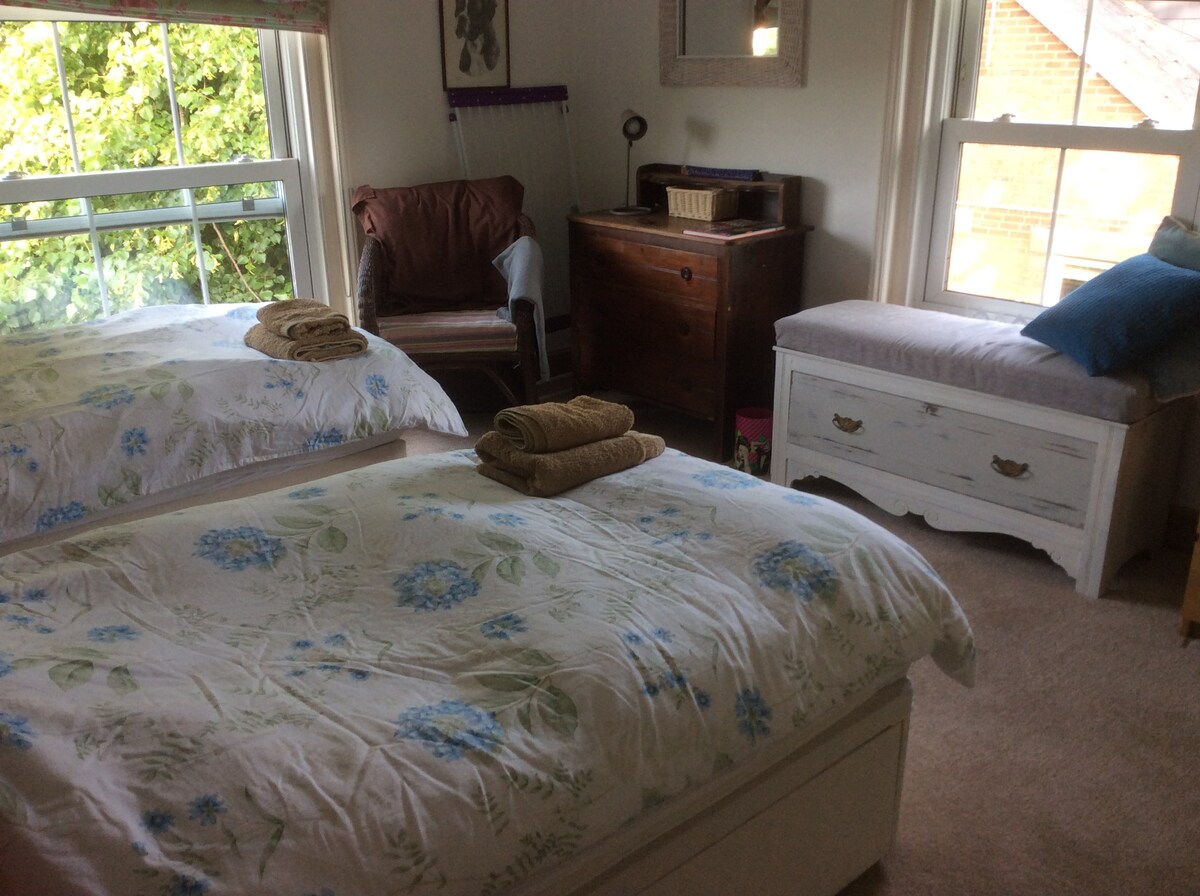 Emma’s Hut is a light and airy self contained bedroom with ensuite shower room and separate area with catering facilities. We are only 20 minutes drive from the Needles and even closer to Freshwater Bay and minutes from the Coastal Path. The historic town of Yarmouth has a great choice of places to eat, a Grade 2 listed pier a castle and fabulous views across the Solent. The ferry comes into Yarmouth from Lymington and is a short walk up the hill to our home.