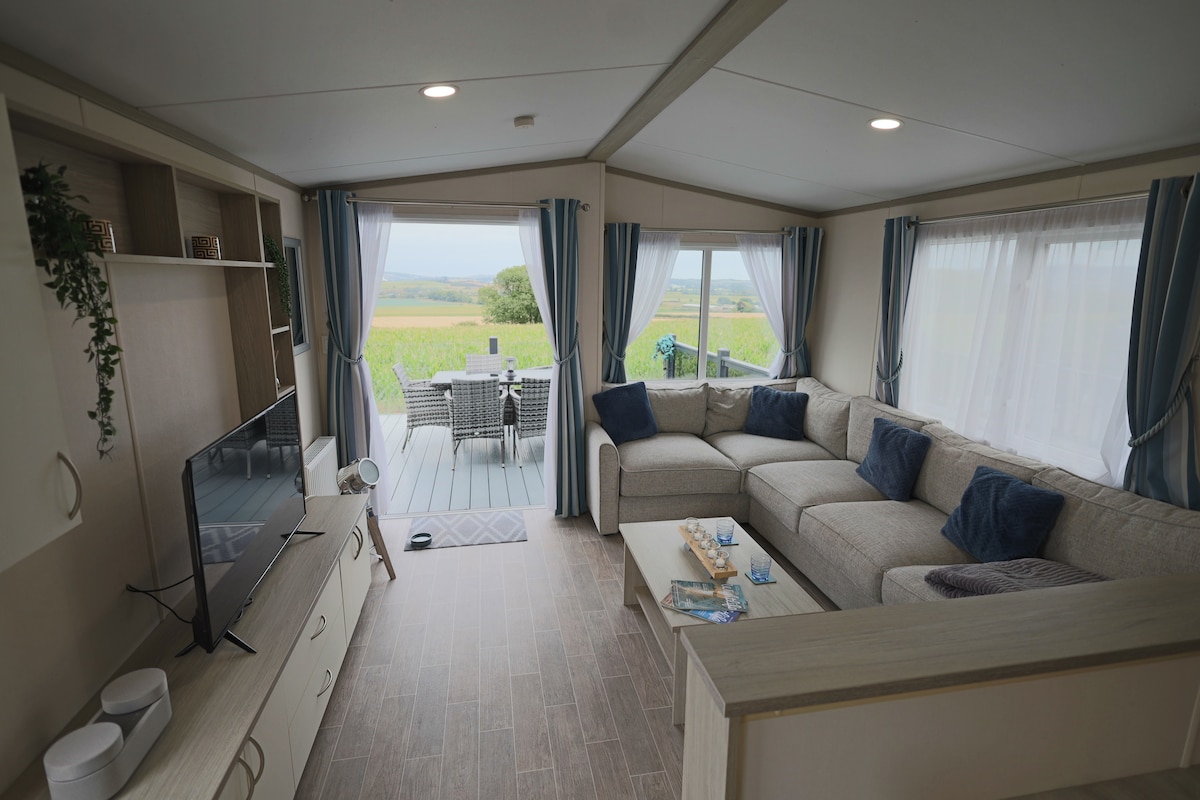 Modern 3-bed, 2-bath luxury caravan in Rookley, the heart of the Isle of Wight. Peaceful spot with wraparound decking and uninterrupted countryside views. Features a double bedroom with en suite, two twin bedrooms, fully equipped kitchen, and open-plan lounge. Just a 5 minute walk to pools, restaurant, bar, entertainment, watersports and playground. Only a 10 minute drive to Newport with direct bus links across the island. Perfect for couples, families or a quiet getaway.