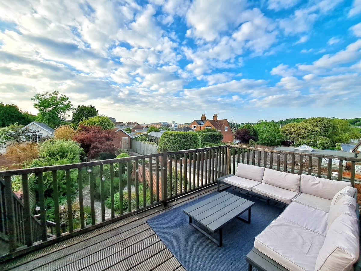 Wake up to stunning views with water on both sides. Picture yourself drinking a glass of wine on either of the 2 balconies as you soak in the beautiful surroundings A light & relaxing 3 story townhouse standing on stilts in a peaceful marina surrounded by lots of nature walks & wild life. Located on the River Medina, close to Newport, nothing is too far away. River bank walks, cycle paths & plenty of green space. You will be sure to have a very relaxing & comfortable stay in this lovely home.