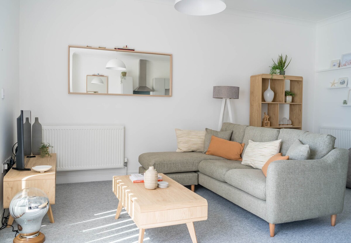 Spacious flat with period features. Lovely lounge area with 2 Sofa's ,Bay window with sea view. 55" Sky Glass TV, Large bedroom with quiet aspect to rear garden.Double bed and 1 fold up bed with proper mattress available. Bathroom with power shower over bath. Bright kitchen with double doors onto raised patio area, perfect for morning coffee and steps down to large private enclosed garden. Parking permits provided for street parking poutside property