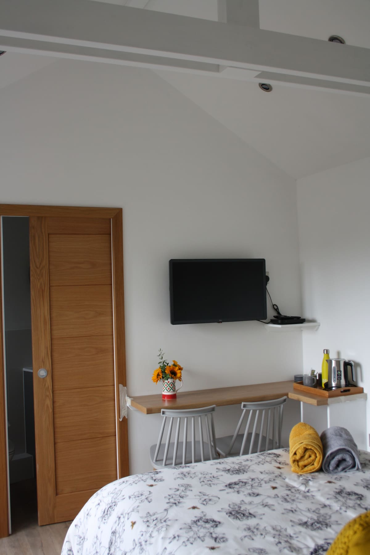 NEW Hidden Gem! A stone's throw away from beautiful Old Town Bay. We offer you a sparkling new private Ground floor ensuite double guest room. You will love the light, airy Scandanavian feel of our guest space with its coordinating luxurious bed linen, towels and underfloor heating. A double sized cubicle and powerful electric shower & towel rail to keep your towels toasty. TV includes SKY Q channels. We provide a kettle, tea & coffee and fresh milk for you on arrival.