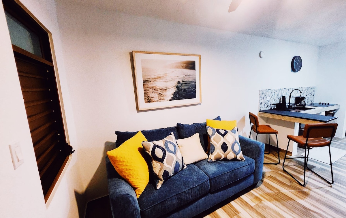 Peaceful Hideaway near Surf, Sun & Serenity. Unwind in style just minutes from the Atlantic coast at this sea-inspired apartment. Whether you're craving peaceful beach days or high-energy adventure, you're perfectly placed. From swimming and surfing to zip lining and cave exploring, every day brings a new thrill—or a new excuse to do nothing at all. Greet the day with a seaside stroll, sample local bites bursting with flavor, and close it all with glowing sunsets and the rhythm of the waves.
