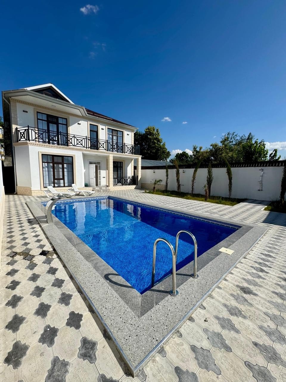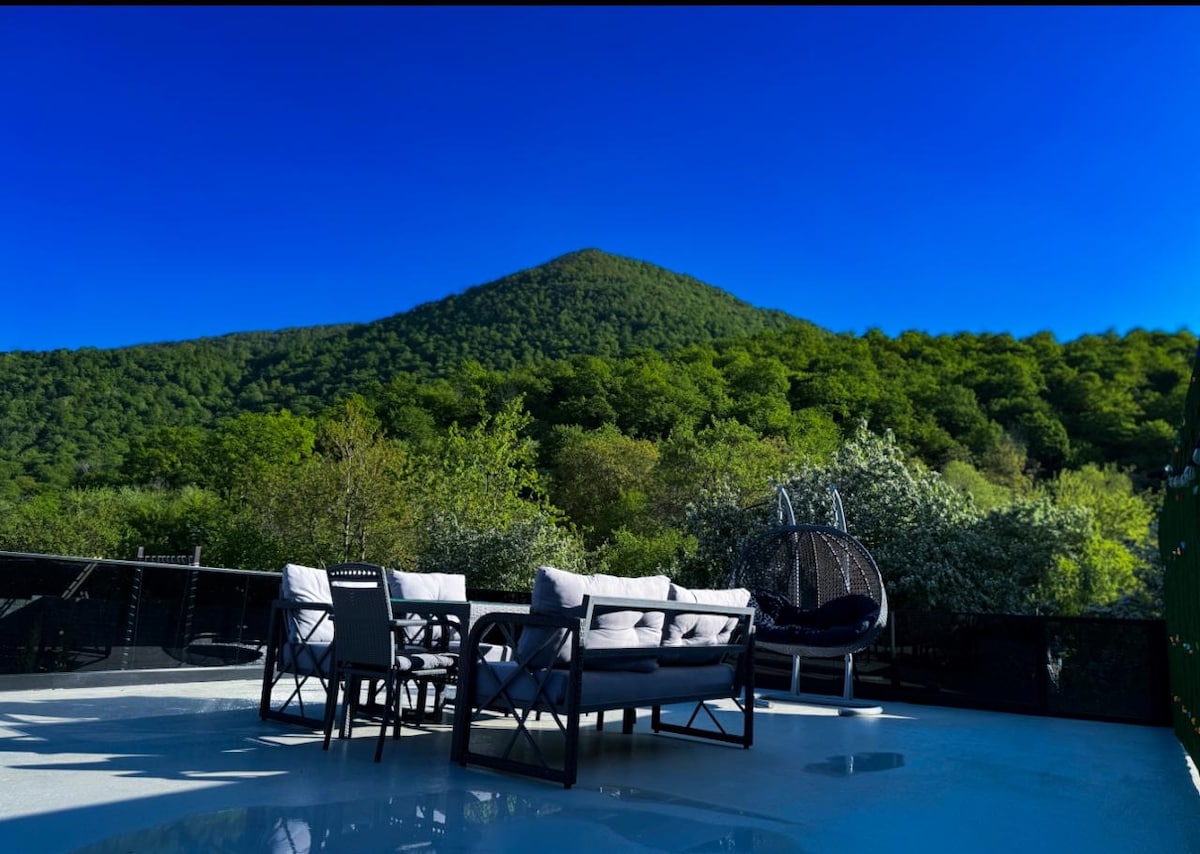 Newly built villa in central Gabala, at the foothills of the Caucasus Mountains. Includes 3 bedrooms, a spacious living room, 3 air conditioners, 2 bathrooms, 2 toilets, 260+ premium TV channels, high-speed fiber internet, and mountain views. The yard offers an Intex filtered pool, BBQ, samovar, table and chairs. Fresh air, full comfort — ideal for families and groups seeking nature and peace.