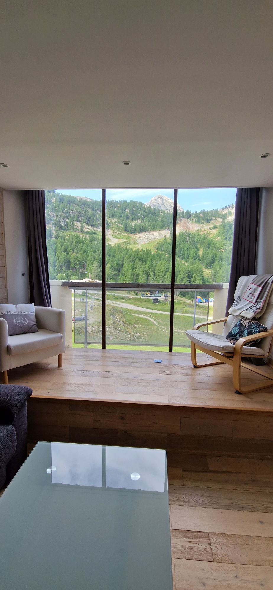 Our apartment has been renovated and furnished recently with care. Everything has been designed to be practical, harmonious and very comfortable. The bedding is first choice (160 bed / 160 sofa bed). The building is very well located (facing south) next to the funicular which takes you to the start of the slopes (2 mins away). The view of the mountains is spectacular. The 9 m2 terrace is a real plus in all seasons. Private parking in the basement.
