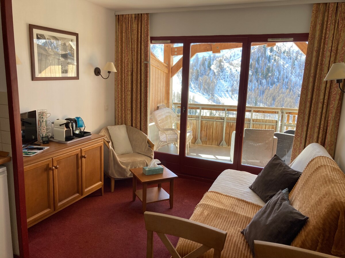 Studio de 22m2 Navette station gratuite devant la résidence. Casier à ski. Appartement avec Terrasse plein sud comprenant : - Cuisine avec plaque électrique, Mini four, micro-ondes, cafetière Nespresso, grille-pain, Appareil à raclette et crêpes, machine à laver, lave-vaisselle - Couchages : lits superposés et canapé-lit 140 cm avec couette - Salle de bain - Dressing
